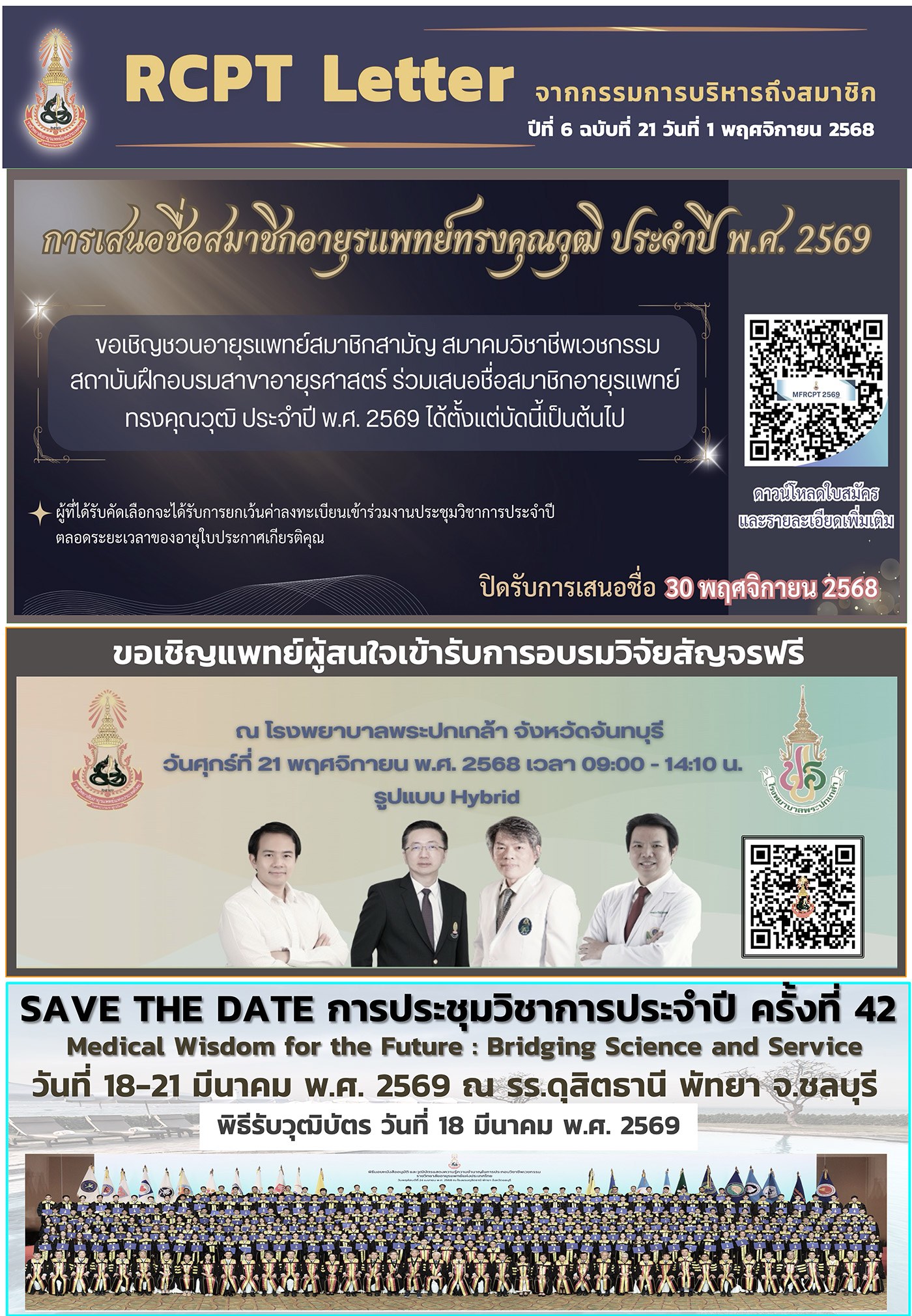 👨⚕️🧑⚕️👨🏫 ขอเชิญสมาชิกและแพทย์ผู้สนใจเข้าร่วมการอบรมวิจัยสัญจร ครั้งที่ 1/2568 โดยราชวิทยาลัยอายุรแพทย์แห่งประเทศไทยร่วมกับโรงพยาบาลพระปกเกล้า