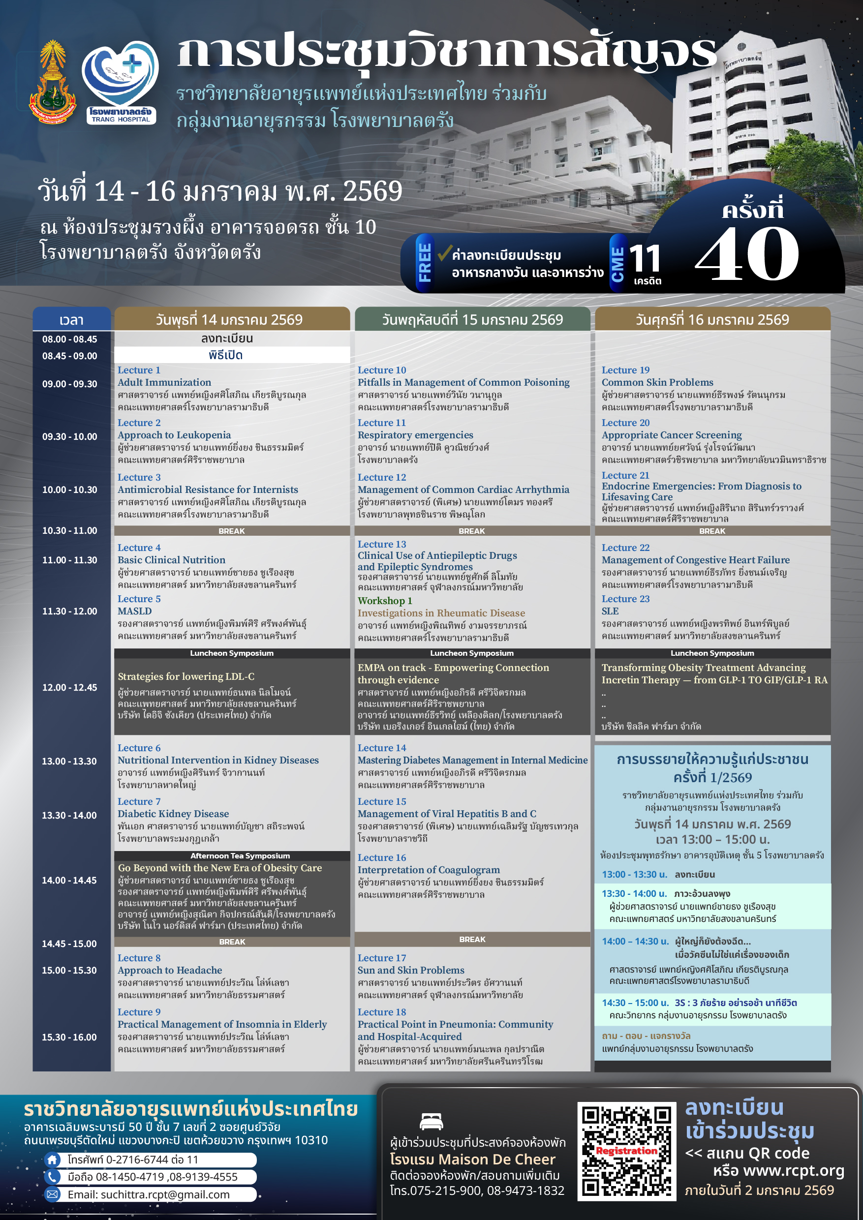 ระหว่างวันที่ 14 - 16 มกราคม พ.ศ. 2569 ณ ห้องประชุมรวงผึ้ง อาคารจอดรถ ชั้น 10 โรงพยาบาลตรัง จังหวัดตรัง
