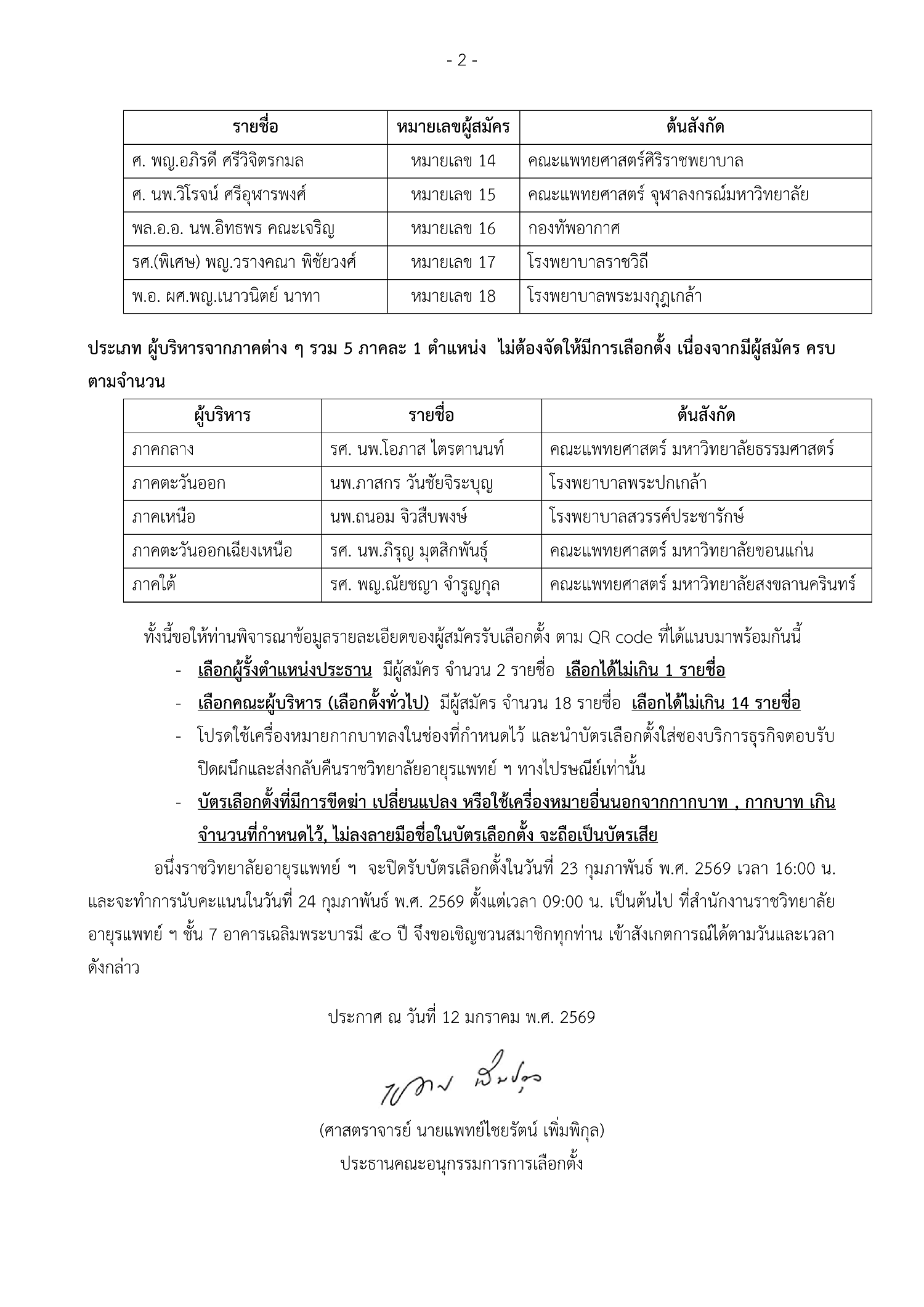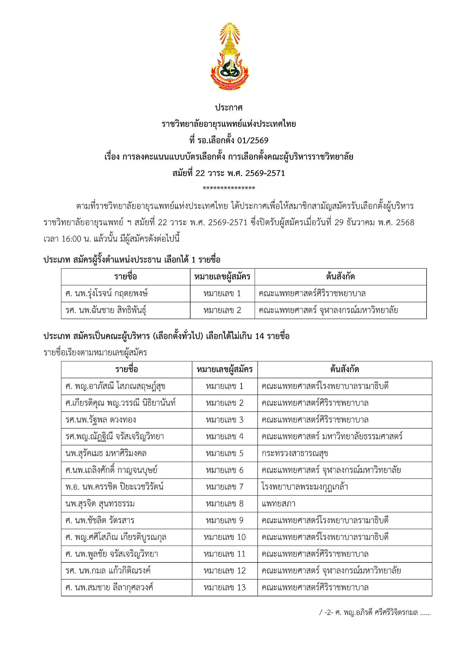 การลงคะแนนแบบบัตรเลือกตั้ง การเลือกตั้งคณะผู้บริหารราชวิทยาลัย ฯ สมัยที่ 22 วาระ พ.ศ. 2569-2571